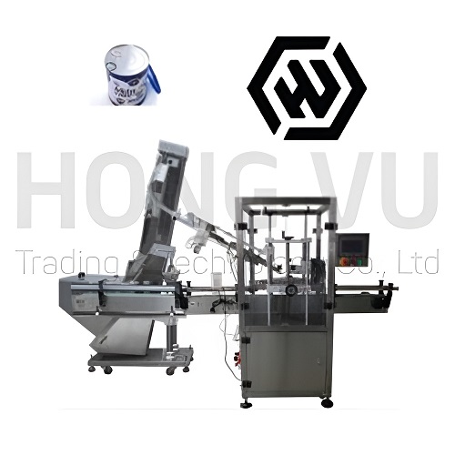 Máy cấp nắp ép nắp nhựa là máy có chức năng cấp nắp và ép nắp vào lon sữa bột. Máy có thể được dùng với cả các loại sản phẩm khác. Máy thường áp dụng trong ngành thực phẩm, dược phẩm, hóa chất.
